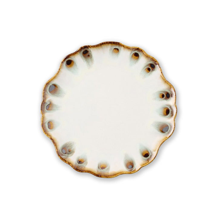 Featuring a scalloped edge dotted with a reactive glaze detail, our Amoria serveware brings vintage-inspired elegance to the table, making every gathering a special occasion.