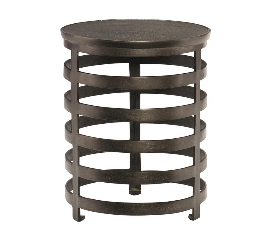 Crafted from cast aluminum in a black nickel finish, this sculptural chairside table offers a chic industrial look.