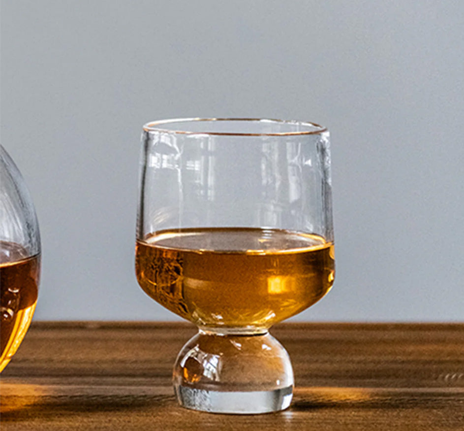 In a nod to Bauhaus architecture and design – and its ethos of clean lines and elemental forms – our angular bourbon glass sits atop a solid spherical base. This geometric silhouette is designed to make the most of your favorite bourbon or favorite after-dinner sip.