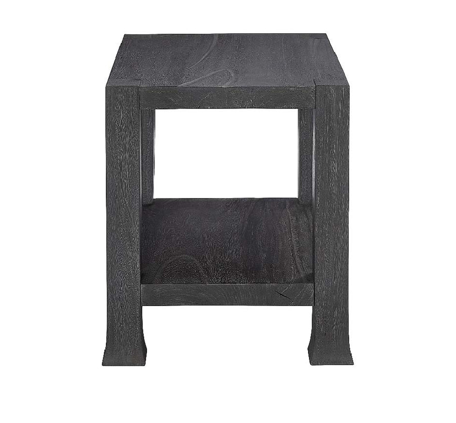 With its beautiful black tone, the sculptural Berkely side table possesses an alluring mystique. A planked pattern highlights the rich texture of the suar wood, carbonized using a modern version of an ancient Japanese technique. The charring process provides impressive durability and a rustic, elegant look.