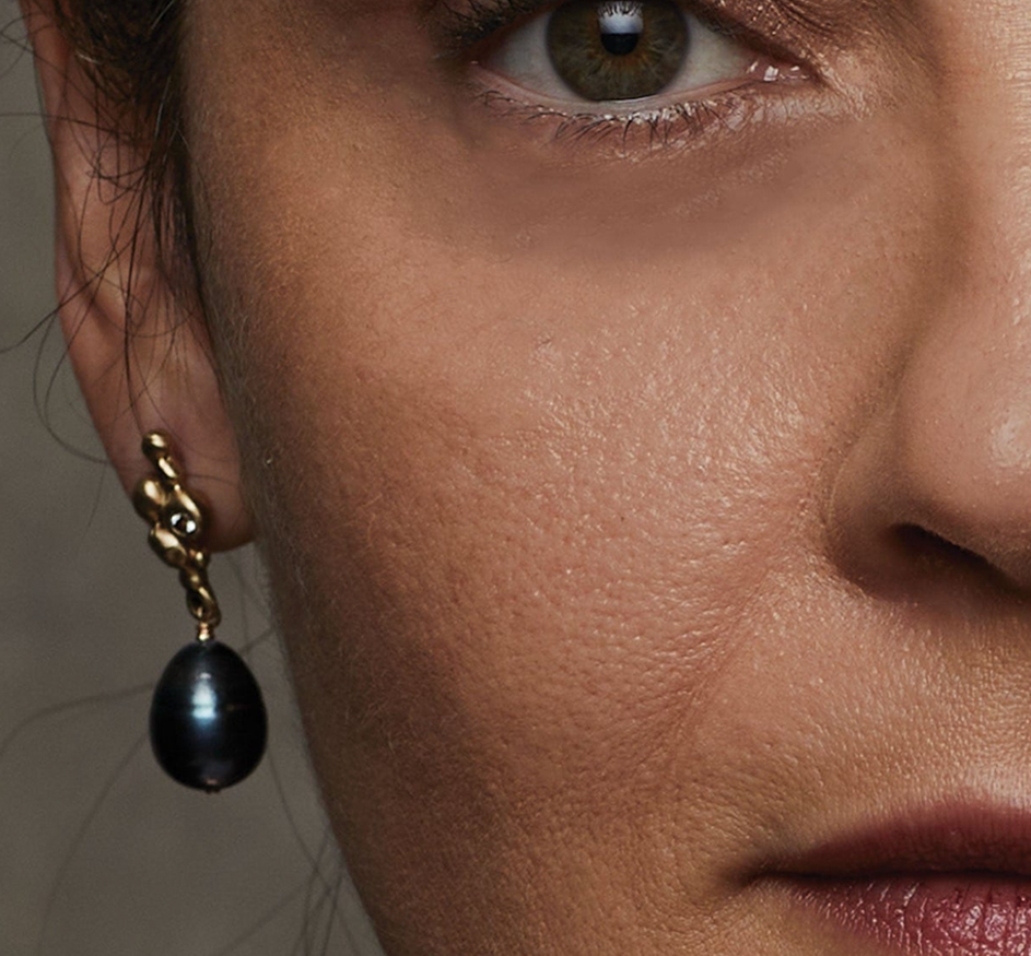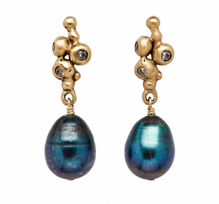 Caldera Bronze Earring with Midnight Pearl and cubic zirconia accent and gold-filled post; 1 inch. Everything about these earrings is elegant and slightly old world.