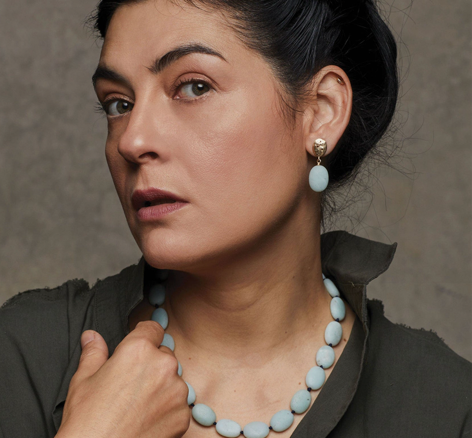 Beautiful Amazonite gems are paired with the Constellation Bronze Earring with gold-filled posts; 1.5 inches.