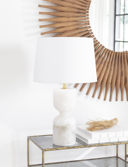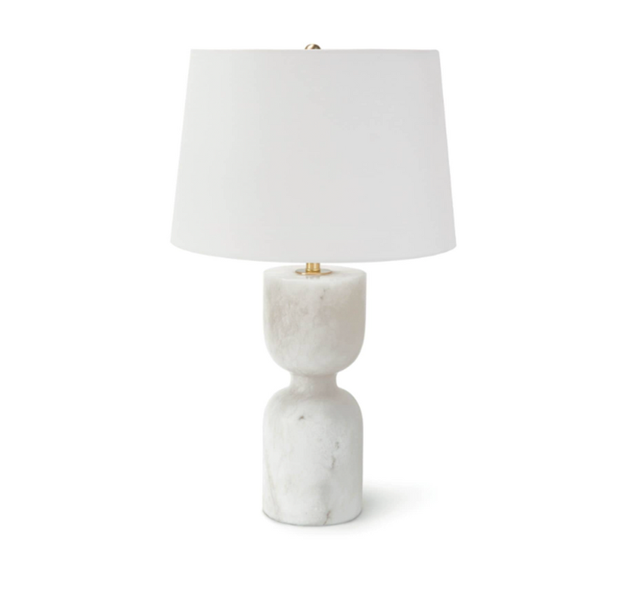 Joan alabaster lamp is shapely yet stately, carved from a solid piece of stone. Its organic feel brings softness to any modern space.