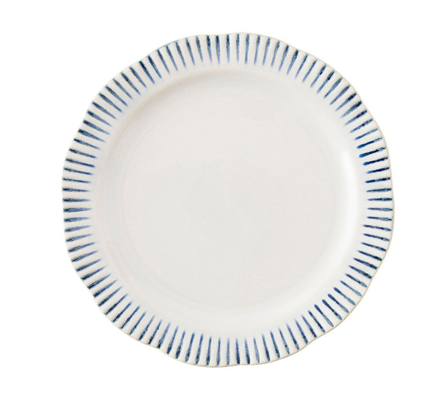 Equally stunning and simplistic, radiant stripes in breezy shades of blue adorn this dinnerware collection.
