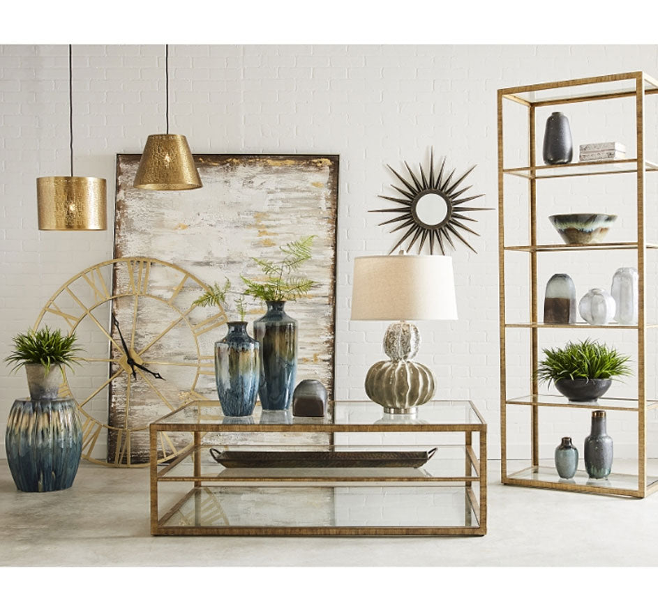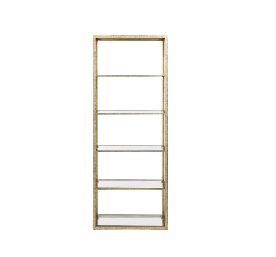 The Strie Bookshelf brings instant modern glam to a living room or home office. Its metal frame comes in a luxe gold finish and holds five glass shelves, creating a chic space for displaying decorative items, plants or books. With its open design, this piece provides useful a surface without encroaching on a sense of light and space.